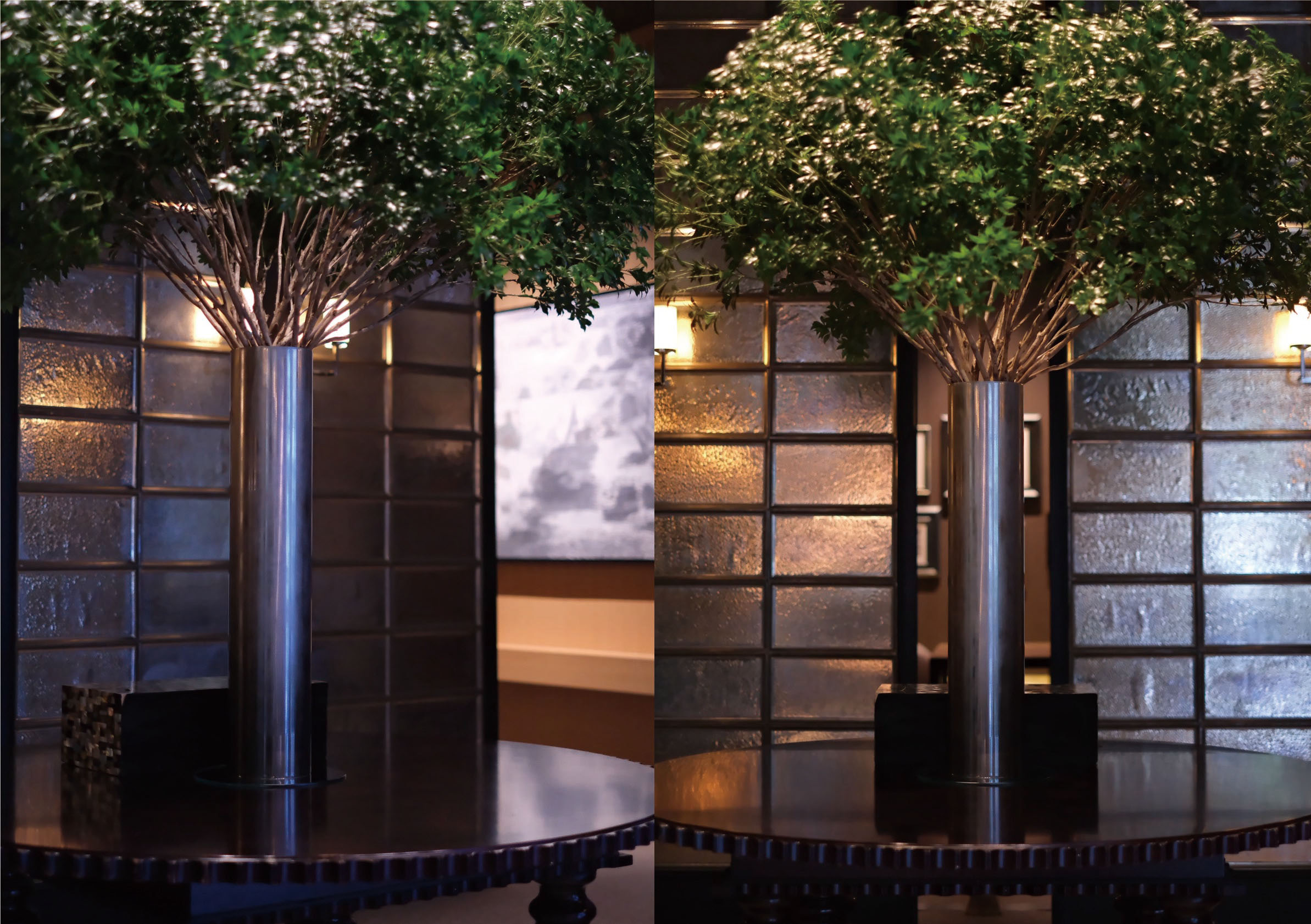 素材の質感が感じられるトランスルーセント・スケープカラーがホテル館内の空間に馴染み、落ち着きと存在感を感じさせてくれます。