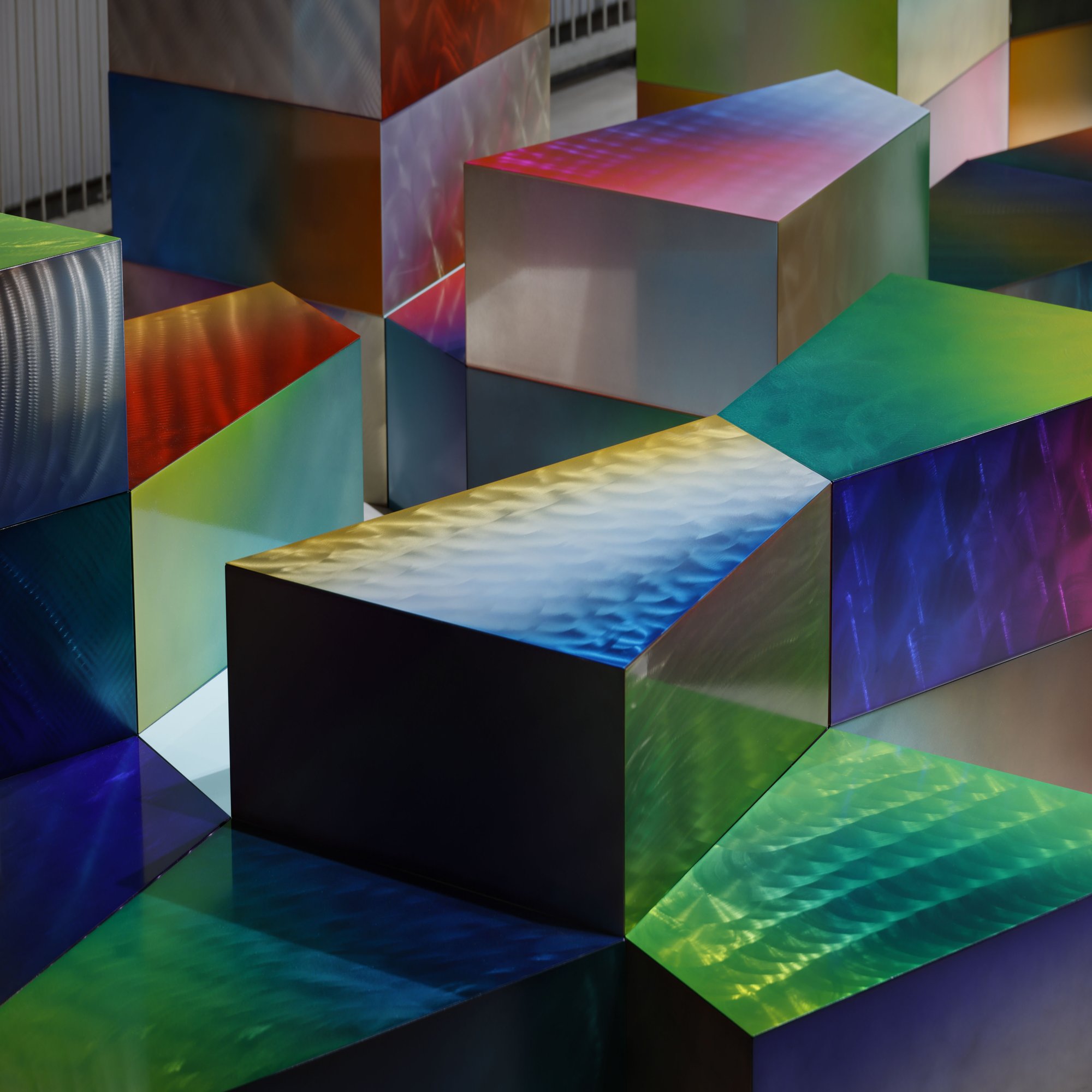 そしてもうひとつ。今回は光にこだわりたかったので照明器具をレンタルし光の演出も行いました。私達のグラデーション粉体塗装は最近はもっぱらカラークリアでの表現が多く、透過性のある塗料が金属の質感も活かし彩りを加えてくれています。そこに光を加えることで色の表現のレベルが格段に上がり、さらに奥行きまで追加されることで全体のクオリティもかなり高いものにすることが出来ました。